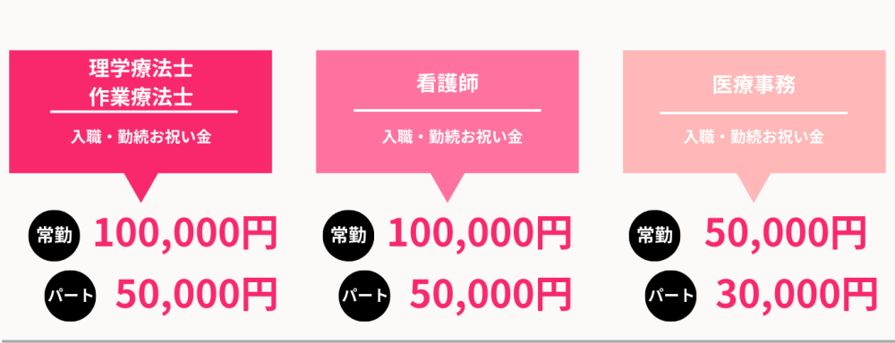 ※入職・勤続お祝い金は、半年後に支給いたします。